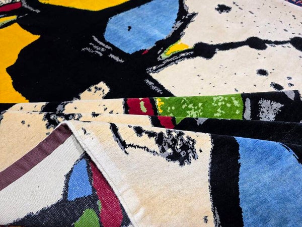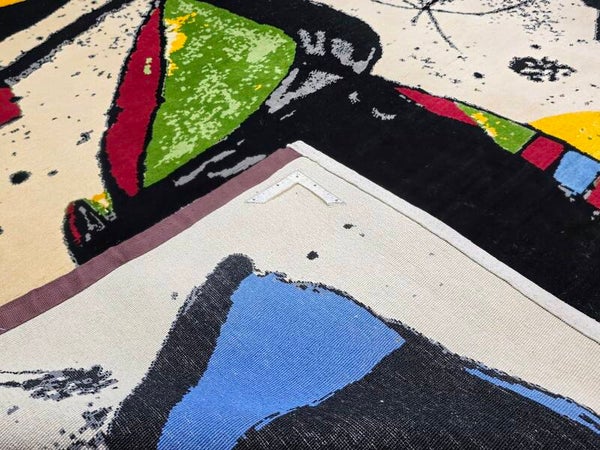 Joan Miro - Tapis d'après, Contemporain fait à la main.