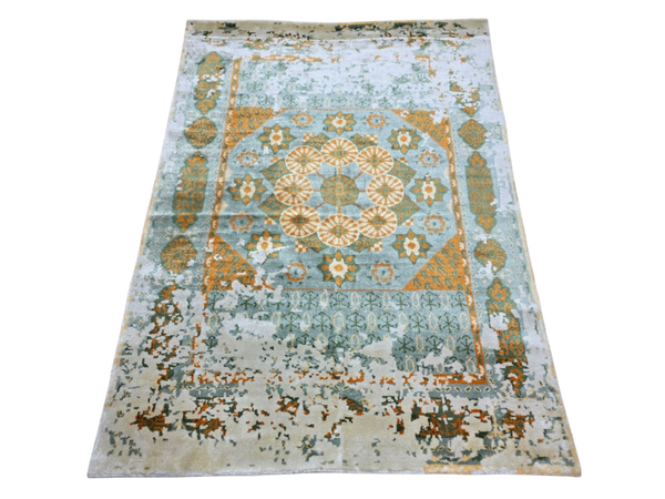 Tapis de récréation - Composition en laine et soie bamboo noués main de style Mamlouk l'Égypte est un produit exceptionnel qui représente fièrement la richesse du patrimoine indien dans la catégorie 'tapis designers'. Fabriquée à la main par les maîtres artisans, cette pièce apporte non seulement du confort mais aussi de la couleur et du caractère à n'importe quelle pièce, ce tapis est un joyau pour tout amoureux des arts décoratifs. La combinaison de laine et de soie bamboo assure une texture veloutée et une allure luxueuse qui plaira à vos sens. Chaque mèche nouée à la main sur ce tapis exquise a été soigneusement disposée pour créer une harmonie de motifs et de couleurs. Cette belle addition à votre intérieur ne montrera pas seulement votre goût pour l'artisanat fin, mais résistera également à l'épreuve du temps grâce à sa robustesse et sa durabilité exceptionnelles.