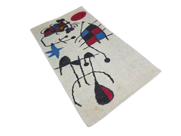 Joan Miro - Tapis d'après, Contemporain fait à la main.