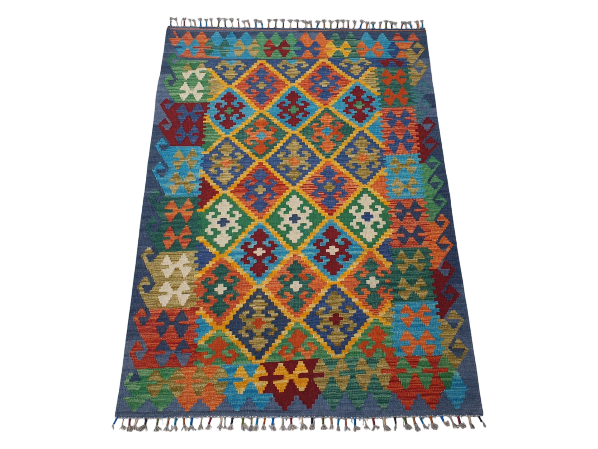 Tapis Kilim Géométrique 175x125 multicolore tissé en laine
