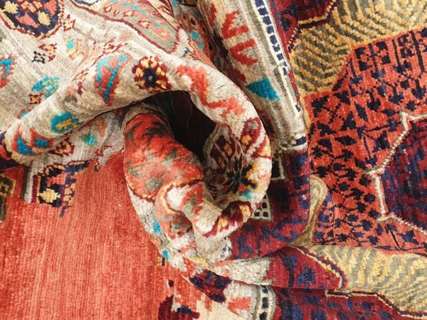 Aujourd’hui, ce style historique a été magistralement préservé et réinterprété par les artisans d’Afghanistan, héritiers d’une longue tradition de tissage oriental. Chaque tapis Mamelouk afghan est noué entièrement à la main avec de la laine filée à la main et souvent teintée avec des pigments naturels, perpétuant un savoir-faire transmis de génération en génération. Les motifs géométriques complexes, les bordures richement décorées et la symétrie remarquable témoignent d’un travail minutieux et d’une grande maîtrise technique. Au-delà de sa fonction décorative, ce tapis représente un véritable patrimoine culturel, reliant l’esthétique raffinée du monde islamique médiéval à l’artisanat contemporain d’Asie centrale.