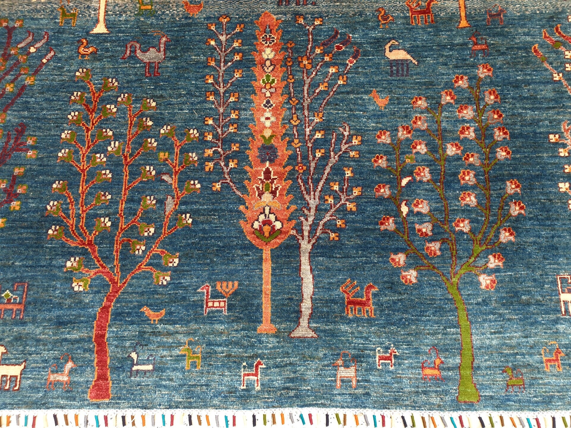Inspiré des célèbres tapis Bakshaish originaires de la région historique d’Azerbaïdjan persan, le tapis Bakshaish noué à la main d’Afghanistan s’inscrit dans la continuité d’une tradition textile remontant à plusieurs siècles. Les modèles Bakshaish étaient autrefois tissés dans les villages situés autour de la ville de Heris, au nord-ouest de la Perse, où les tribus locales développaient des motifs audacieux et expressifs caractérisés par de grands médaillons géométriques, des formes angulaires et des compositions volontairement irrégulières. Aujourd’hui, des artisans afghans perpétuent cet héritage en réinterprétant ces dessins emblématiques à travers un savoir-faire ancestral transmis de génération en génération. Chaque tapis est noué entièrement à la main sur un métier traditionnel, généralement avec une laine de haute qualité filée artisanalement et teintée à l’aide de pigments naturels, ce qui confère au tapis des couleurs profondes et une patine authentique. Le résultat est une pièce au caractère unique, où la spontanéité du dessin et la richesse de la texture témoignent du travail minutieux du tisserand. À la fois robuste, artistique et intemporel, le tapis Bakshaish d’Afghanistan incarne la rencontre entre l’héritage persan et l’excellence de l’artisanat afghan, faisant de chaque pièce un élément décoratif prestigieux capable de traverser les générations.