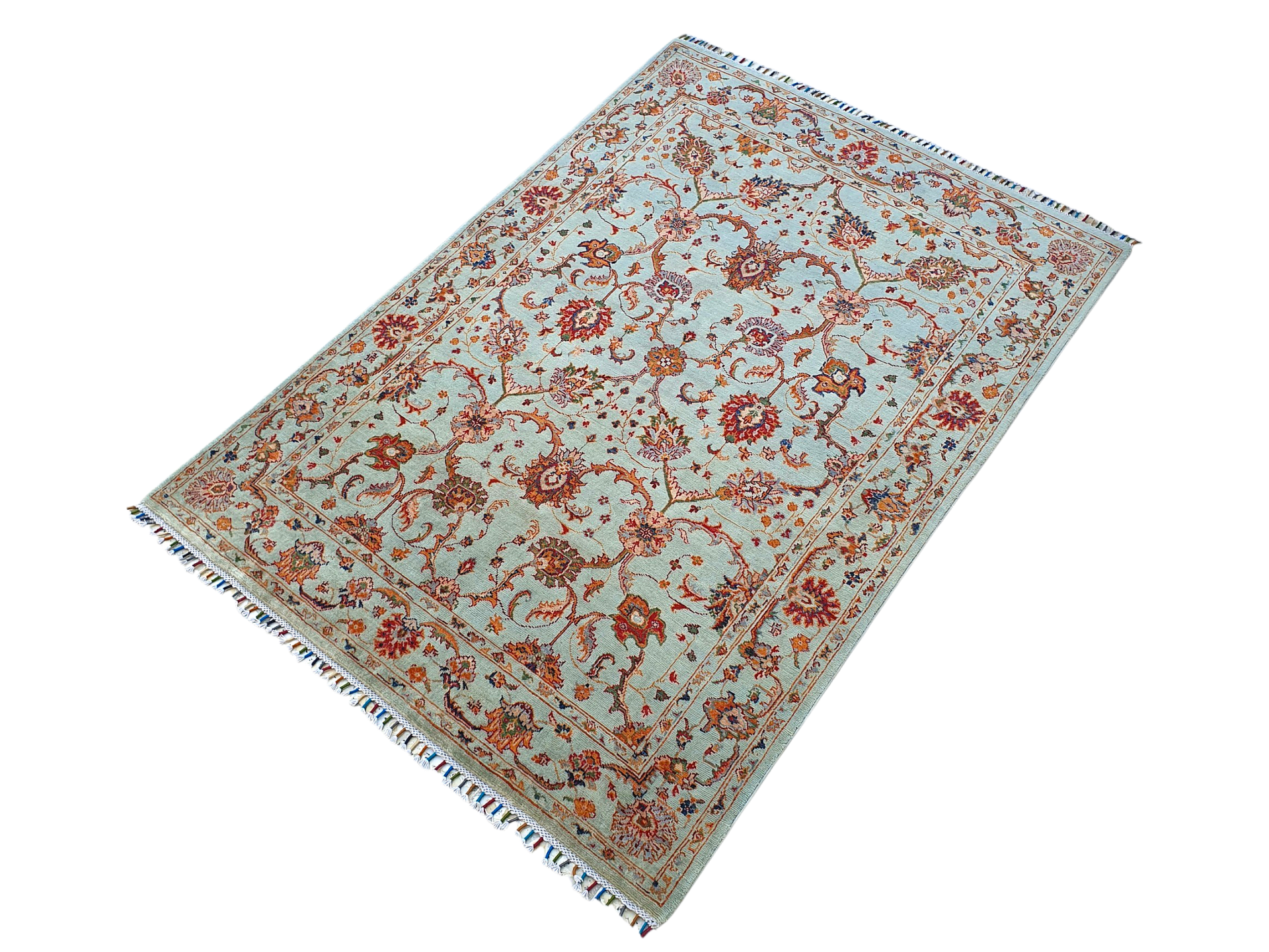 Tapis Sultani Afghanistan 210x149 fondé pistache noué à main en laine