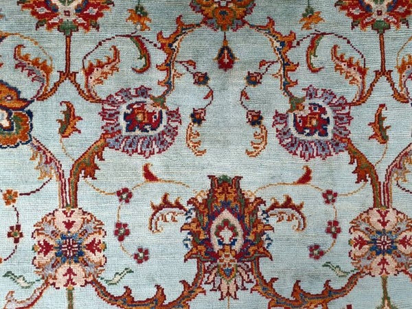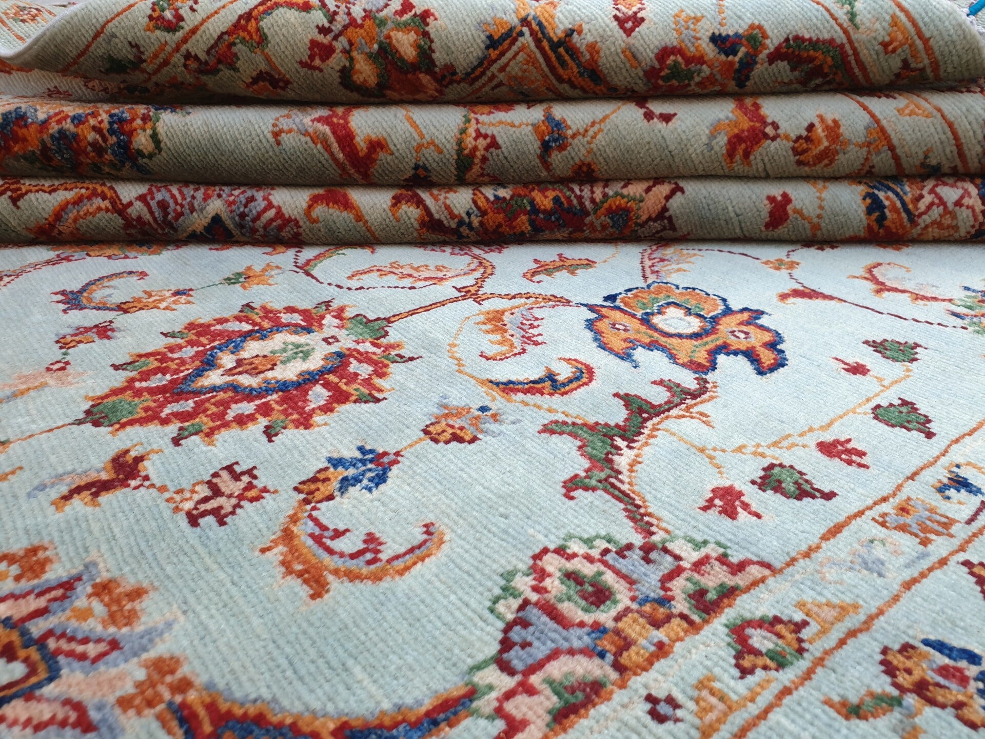 Le tapis Sultani d’Afghanistan noué à la main s’inscrit dans la grande tradition des tapis d’Orient, héritée de plusieurs siècles de savoir-faire artisanal transmis de génération en génération. Son nom provient du mot turkmène « Sultan », signifiant roi, évoquant ainsi la noblesse et la richesse décorative de ce style de tapis. Inspiré des motifs tribaux des peuples nomades d’Asie centrale, notamment des tribus turkmènes et Kuchi, le tapis Sultani se distingue par ses compositions harmonieuses mêlant motifs géométriques, symboles tribaux et éléments floraux. Fabriqué principalement dans les ateliers et villages d’Afghanistan, souvent autour de Kaboul ou dans les régions traditionnelles de tissage, chaque pièce est entièrement nouée à la main par des artisans expérimentés, parfois durant plusieurs mois. Réalisé en laine de haute qualité, souvent issue de la laine Ghazni, et teint avec des pigments naturels, ce tapis reflète à la fois l’histoire, la culture et l’identité des peuples afghans. Grâce à sa technique de nouage traditionnelle et à la densité de ses nœuds, le tapis Sultani est reconnu pour sa solidité exceptionnelle et sa capacité à traverser les générations tout en conservant la profondeur de ses couleurs et la finesse de ses motifs.