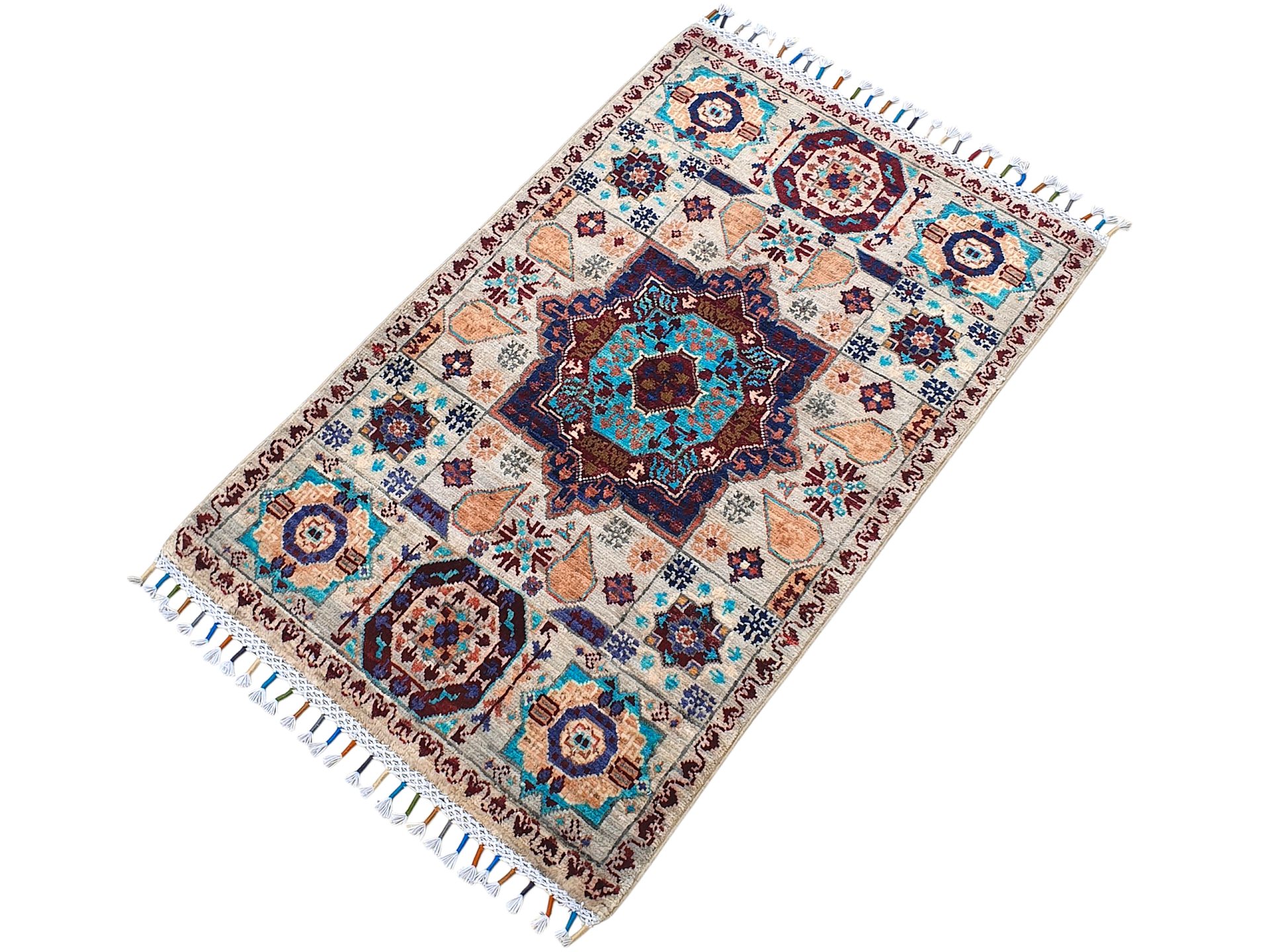 Tapis Mamelouk Afghanistan 98x64 multicolore noué à la main en laine